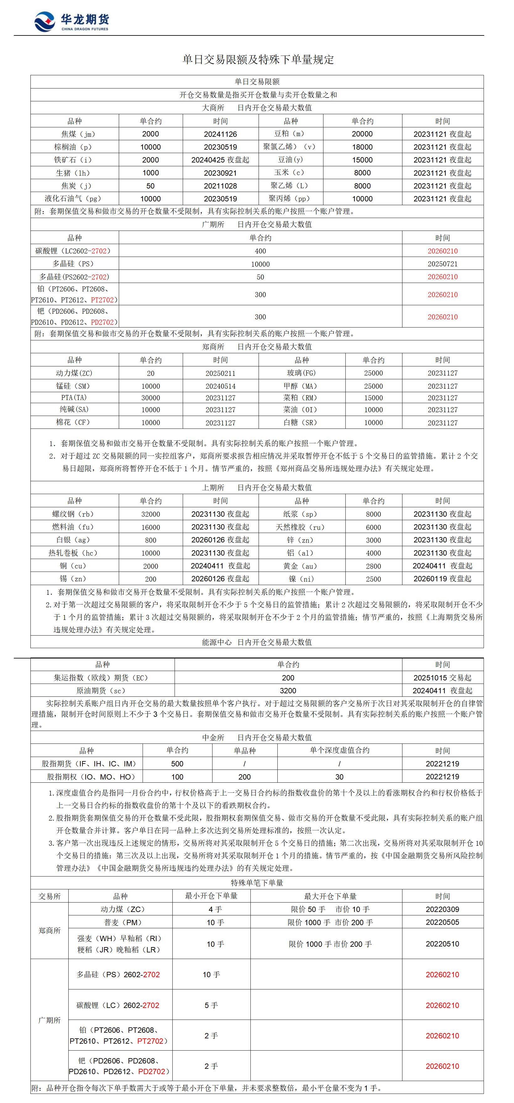 交易所开仓限额手数一览表