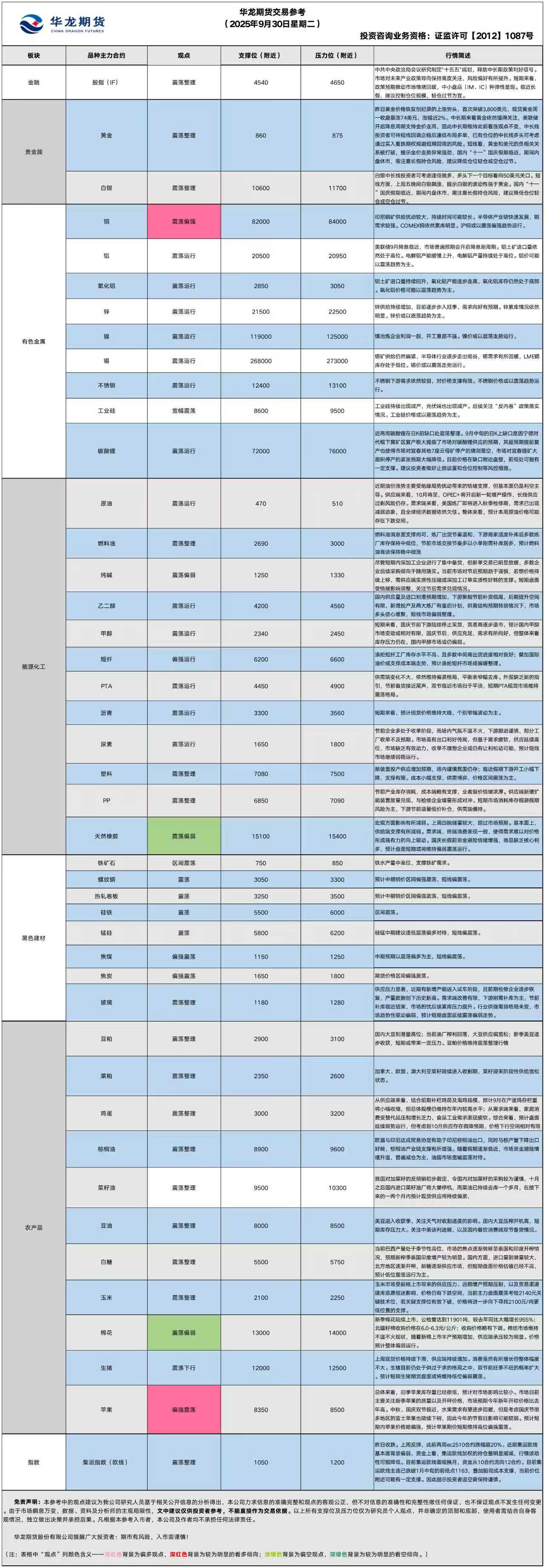 明日起国内开启国庆假期内盘休市,今晚无夜盘交易,建议投资者提前做好仓位管理。