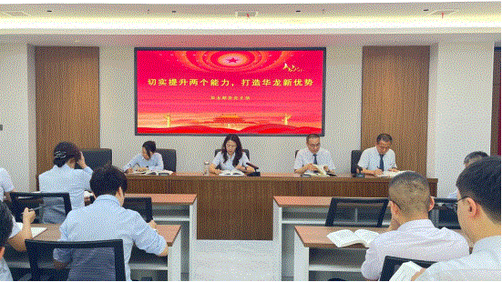 会议传达学习华龙证券公司党委“切实提升‘两个能力’打造华龙新优势”的文件精神,强调关于“对外构建客群能力、对内提升响应能力”的核心要求。