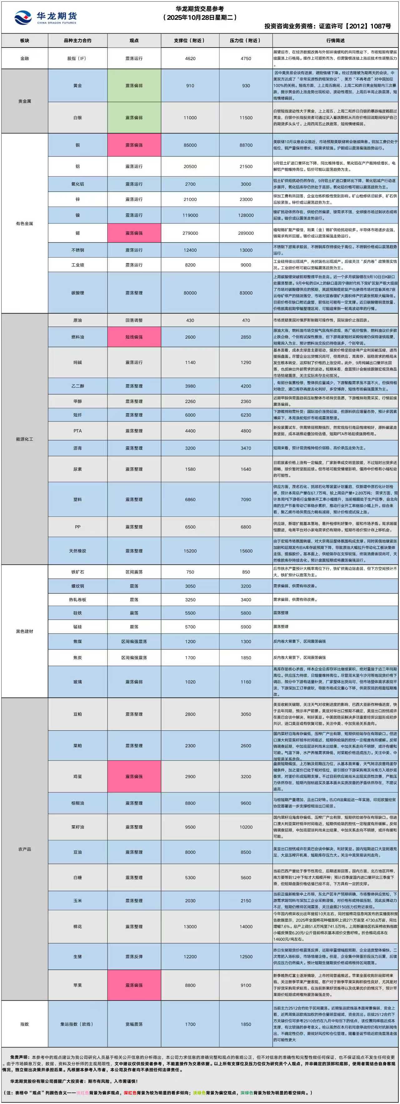 宏观面: 因中美贸易会谈有进展,降低对黄金一部分的避险需求,黄金周一(10月26日)暴跌并失守4000美元/盎司,现货白银跌逾4%。昨日中美经贸团队在马来西亚首都吉隆坡结束为期两天的磋商。两大经济体的谈判代表在马来西亚举行经贸谈判后,于周日提出一份框架协议,包括美国暂停加税。美国财长贝森特在接受美媒采访时表示,经过吉隆坡为期两天的会谈,双方达成了“非常实质性的框架协议”,美方“不再考虑”对中国加征100%的关税。