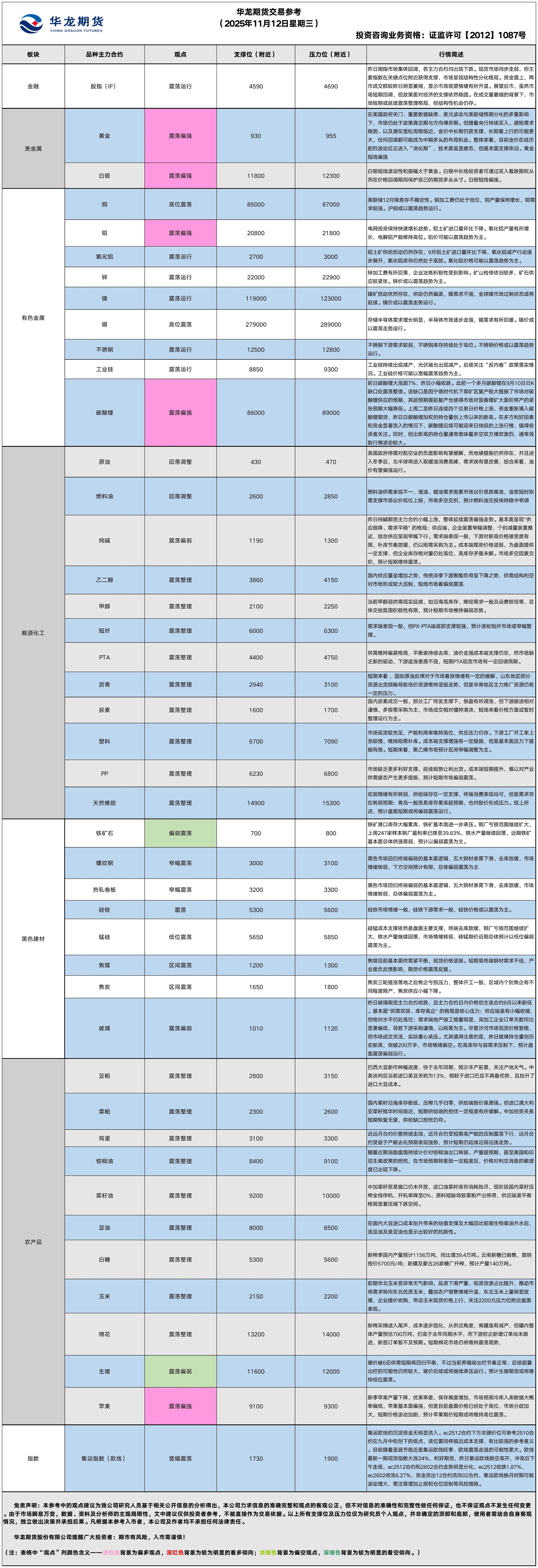 华龙期货每日策略参考(2025.11.12)