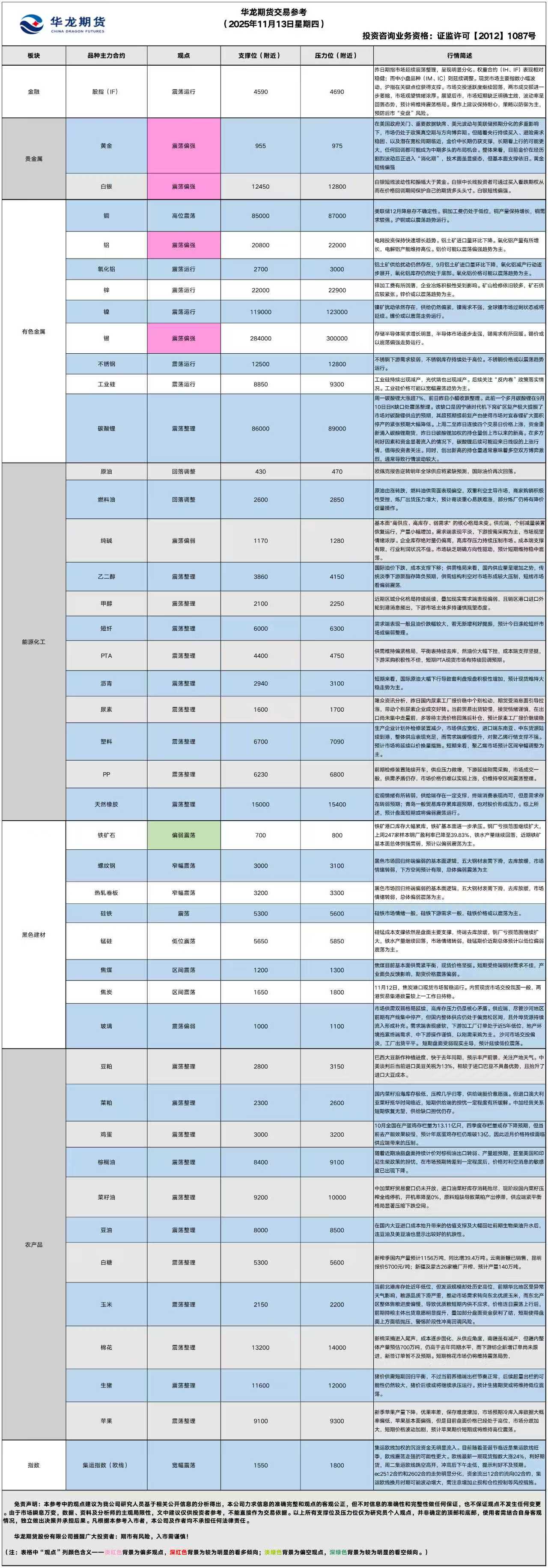 宏观面:国际金价拉升大涨,现货黄金站上4200美元/盎司,为10月21日以来首次,盘中涨超2%。现货白银一度大涨逾4%。华尔街预期创纪录的美国政府停摆可能即将结束。据央视新闻报道,当地时间12日下午,美国国会众议院将就此前参议院通过的联邦政府临时拨款法案进行表决,这或将结束美国联邦政府持续40多天的“停摆”。美国国会参议院10日投票通过一项临时拨款法案。美联储再现人事变动,亚特兰大联储行长博斯蒂克意外宣布将于明年2月退休。白宫国家经济委员会主任凯文·哈塞特在谈到美联储主席人选时表示,如果特朗普邀请,他会出任。关于降息,美联储多数地方联储票委对12月降息并不积极。博斯蒂克周三表示支持将利率保持原状,直至通胀降至2%的水平。波士顿联储行长柯林斯也表示倾向于维持利率不变以抑制通胀。据CME“美联储观察”:美联储12月降息25个基点的概率为59.4%,维持利率不变的概率为40.6%。