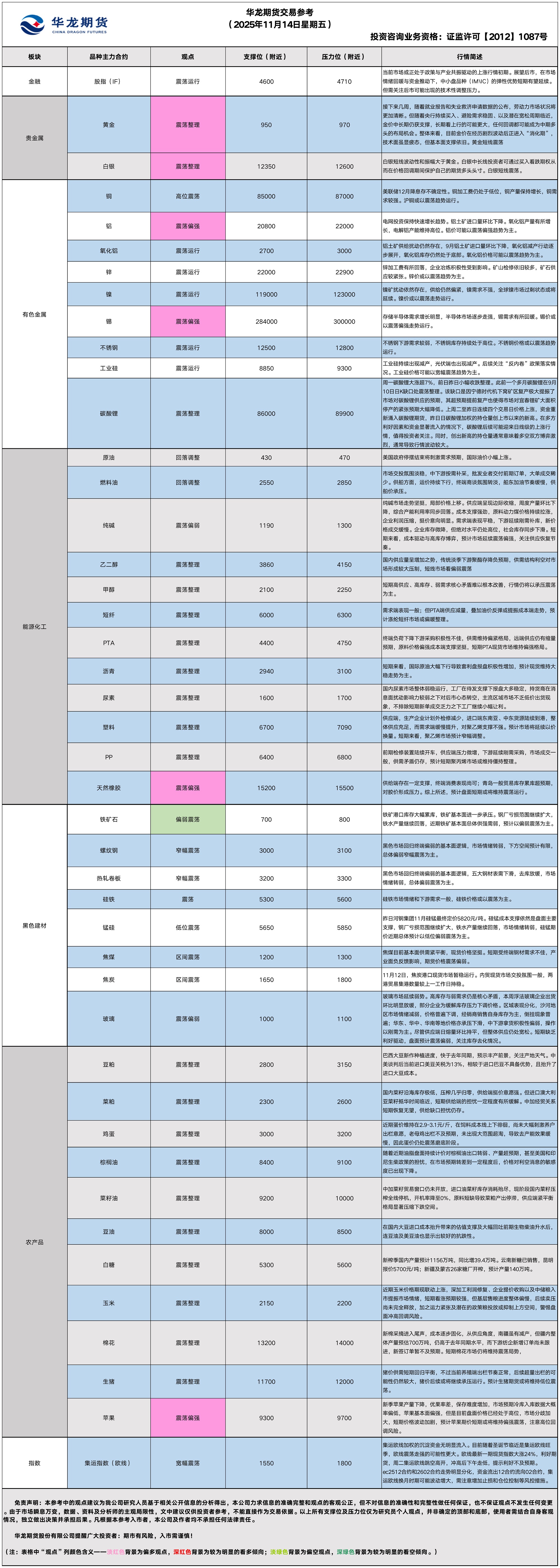 华龙期货每日策略参考(2025.11.14)