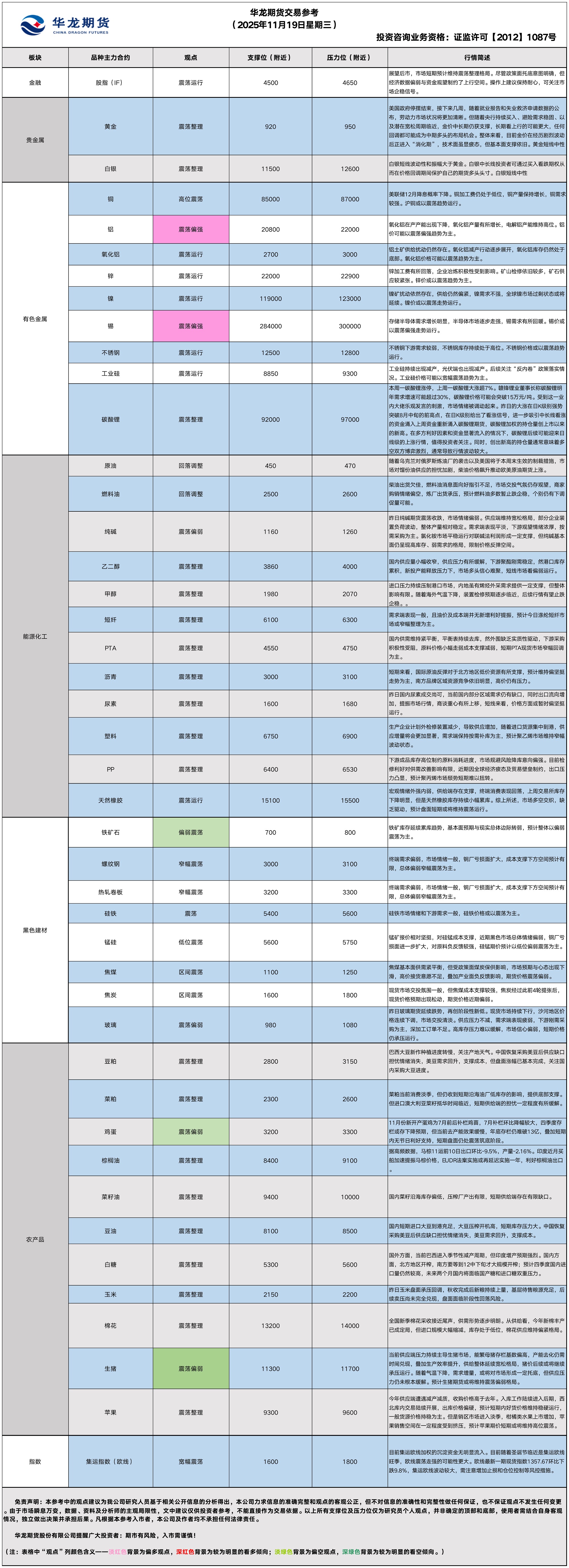 宏观面:1.美国白宫公布总统特朗普签署的最新行政令,将部分农业产品排除在此前依据《对等关税行政令》所征收的附加关税之外。