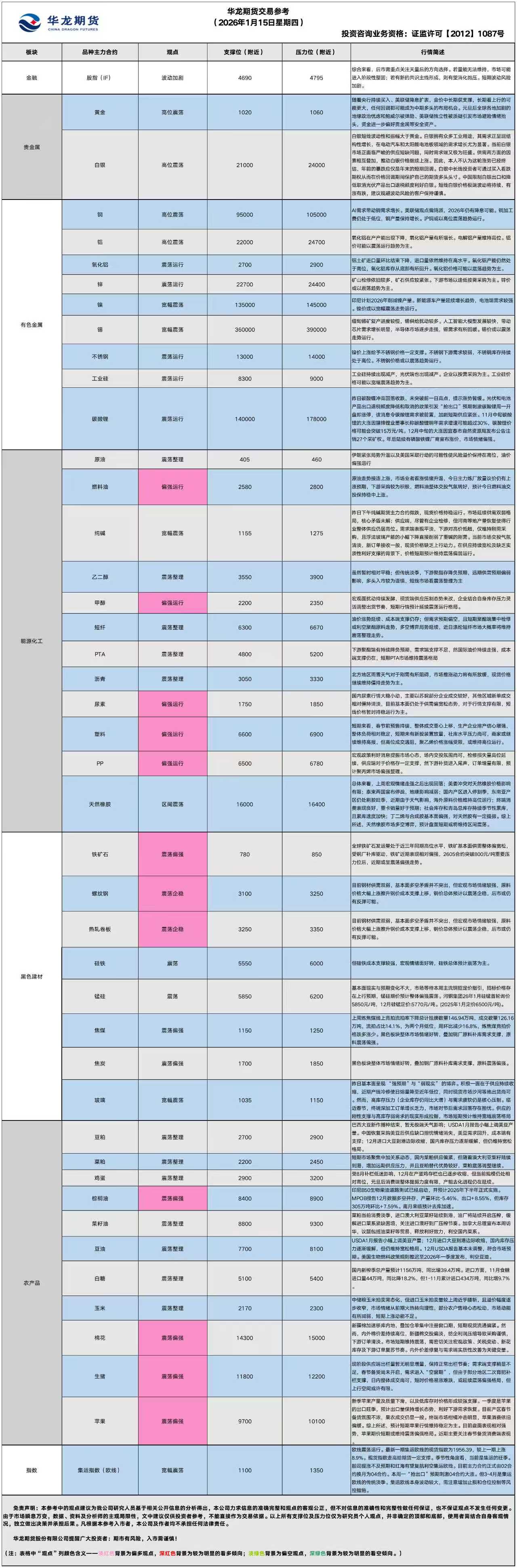 华龙期货每日策略参考(2026.01.15)