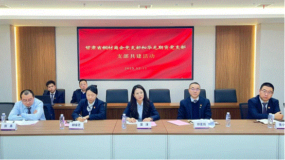 为深入贯彻落实党的二十届四中全会精神,以党建引领产业与金融深度融合,12月11日下午,华龙期货党支部与甘肃省钢材商会党支部以“支部共建强根基,产融协同促发展”为主题,共同举办支部共建活动。甘肃省钢材商会会长周启涛,党支部书记兼副会长樊荣,华龙期货党支部书记、董事长吴洋及双方支部党员约30余人参加此次活动。