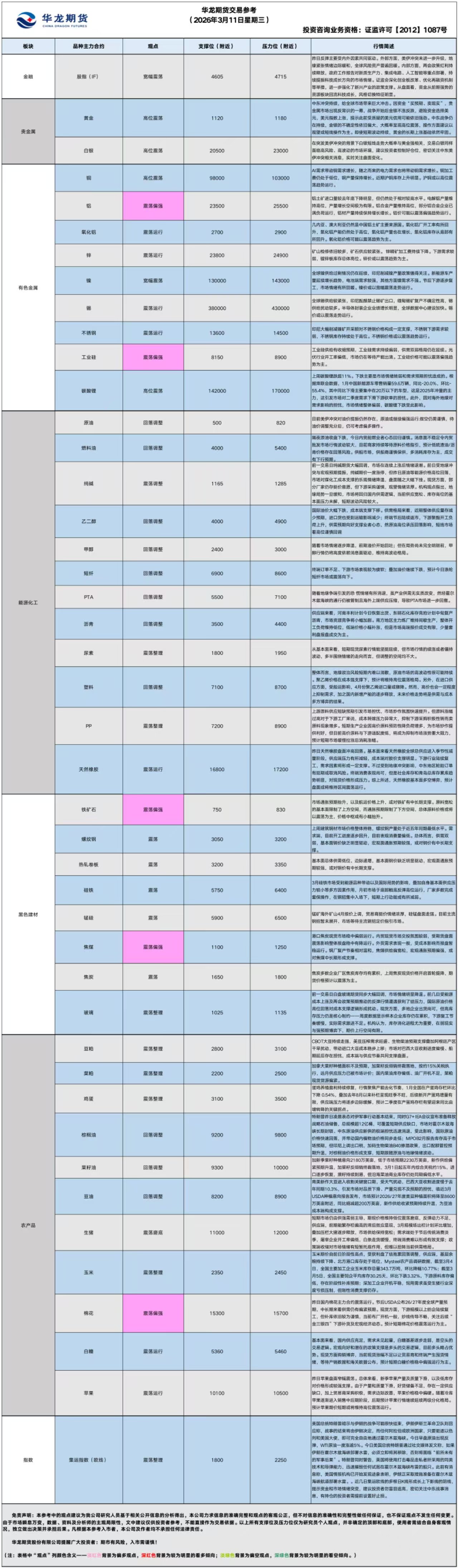 华龙期货每日策略参考(2026.03.11)
