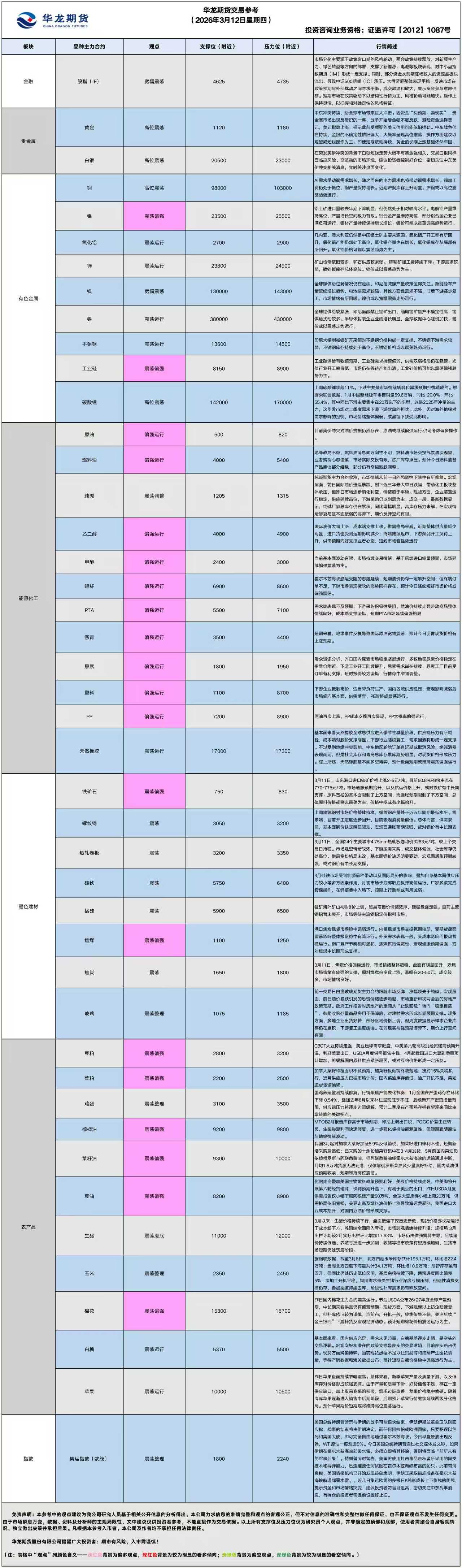 华龙期货每日策略参考(2026.03.12)