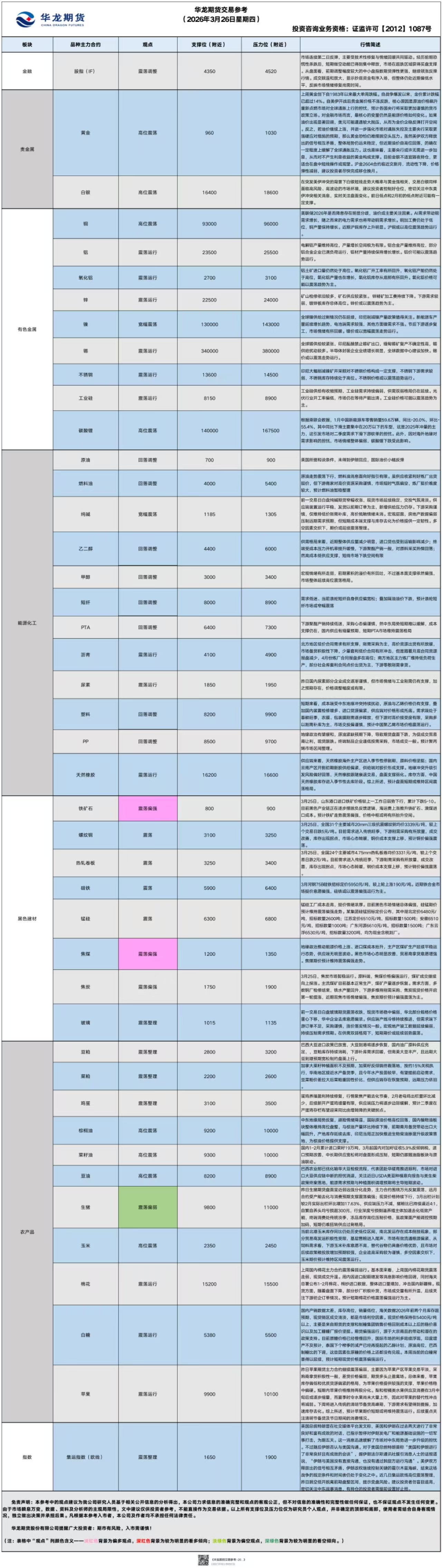 华龙期货每日策略参考(2026.03.26)